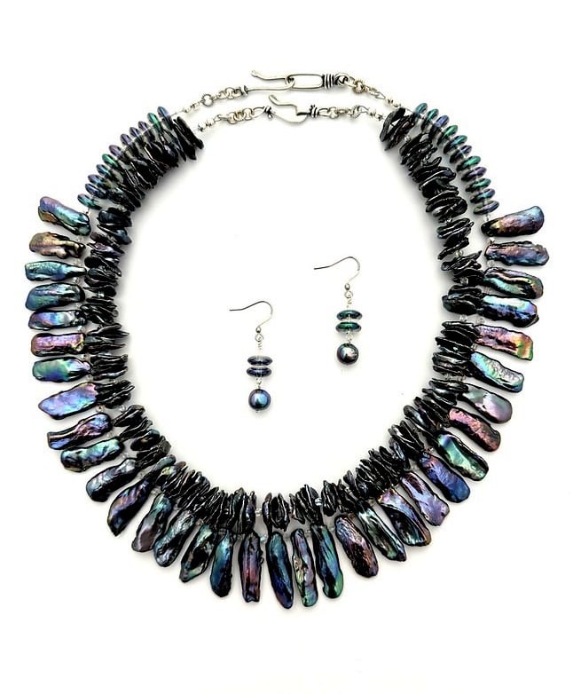 This set of includes earrings and was handcrafted with cultured freshwater pearls and glass beads. The classic combination of pearls and glass beads creates a versatile and stylish set that can be worn for any occasion.